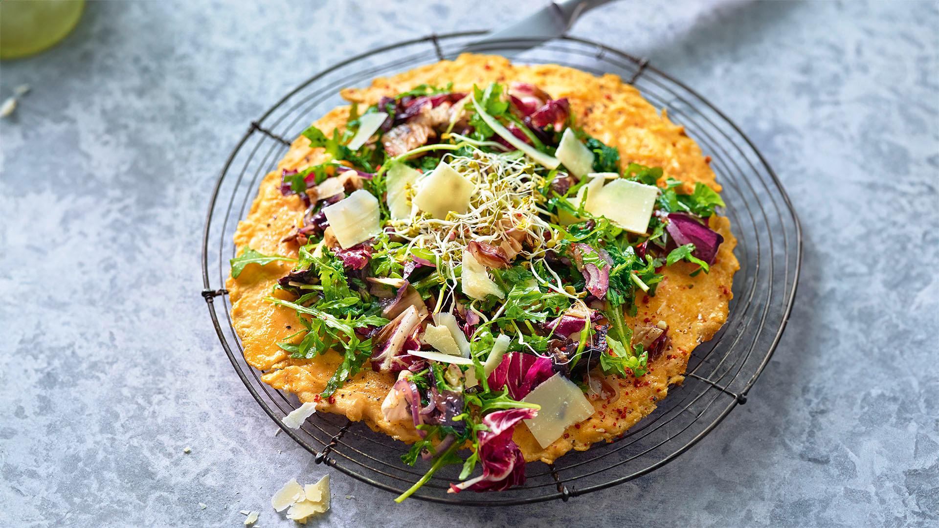 Omelette mit Radicchio, Rucola und Parmesanspänen
